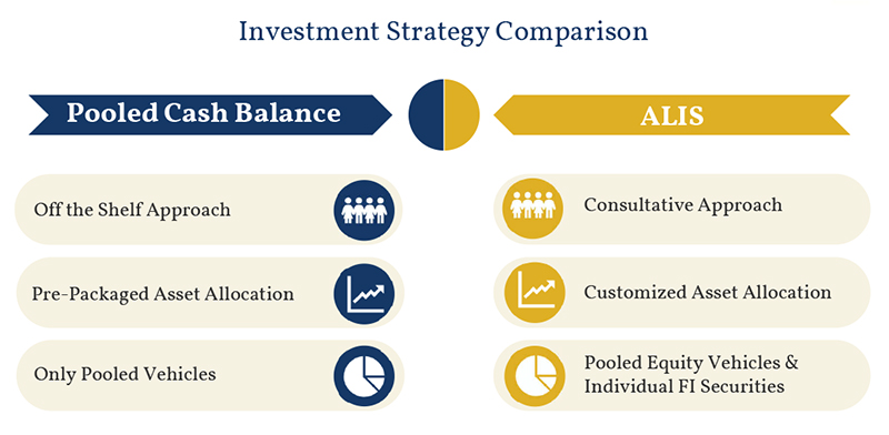 Every cash balance plan has a unique design. We are experts at custom portfolio management and build portfolios to match the distinct characteristics of each plan.